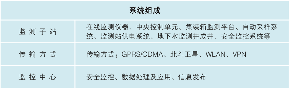 監測子(zǐ)站(zhàn):在線監測儀器(qì)、中央控制(zhì)單元、集裝箱監測平台、自(zì)動采樣系統、監測站(zhàn)供電(diàn)系統、→地(dì)下(xià)水(shuǐ)監測井成井、安全監控系統等;