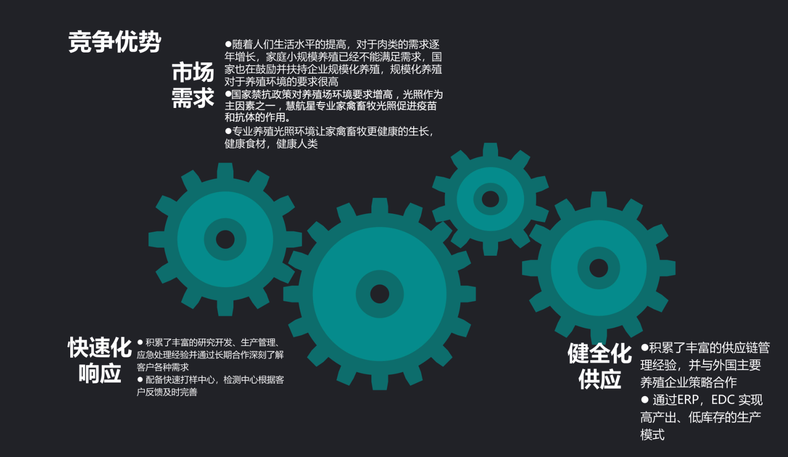 慧航星智能(néng)照(zhào)明(míng)事(shì)業(yè)部系國(guó)內(nèi)外(wài)領先的(de)畜牧養殖光(guāng)照(z≤hào)系統部,專業(yè)提供蛋雞光(guāng)照(zhào)系統、肉雞光(guāng)照(zhào)系統、養豬光(g∞uāng)照(zhào)系統、奶牛光(guāng)照(zhào)系統,養鴨光(guāng)照(zhào)系統等多(duō)功能(néng)養殖場(chǎng)光(guāng)照(λzhào)解決方案,主導産品可(kě)廣泛應用(yòng)于家(jiā)禽養殖場(chǎng)、畜牧養殖 場(chǎng),大(dà)型溫室種植基地(dì)等。